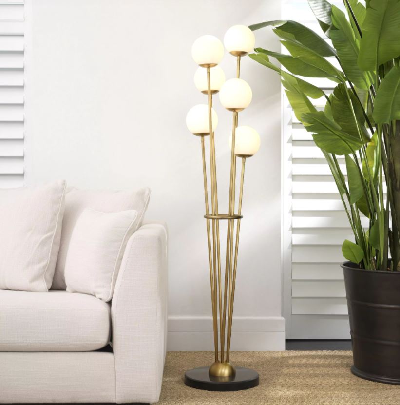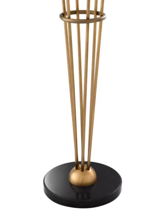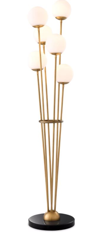 Ruostumattomasta teräksestä, lasista ja marmorista valmistettu rakenne tarjoaa pitkäikäisyyttä, vakautta ja premium-luokan viimeistelyn. Antiikkimessinkiset yksityiskohdat ja kuusi valkoista lasipalloa täydentävät valaisimen ylellisen ja pehmeän estetiikan.