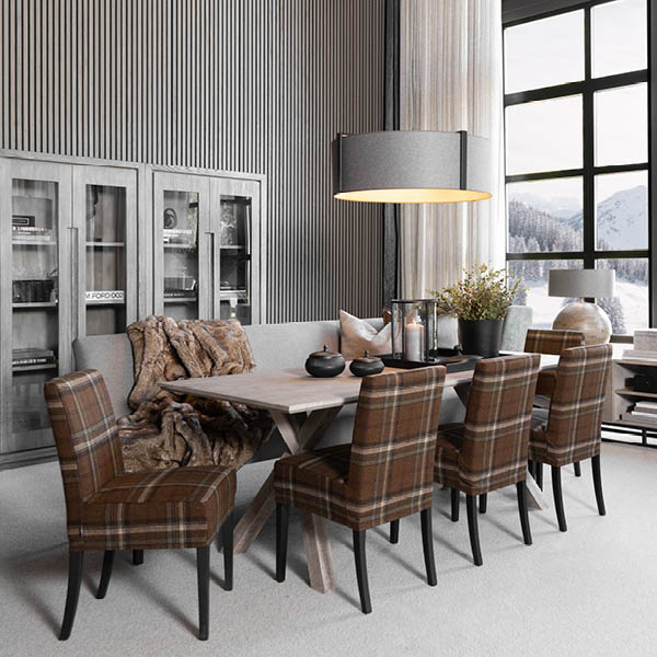 Tree-ruokapöytä yhdistää ajattoman tyylikkyyden ja modernin ristikkojalkarakenteen, tuoden ruokailutilaan näyttävää harmoniaa. Sen selkeälinjainen muotoilu toimii eleganttina keskipisteenä sekä moderneissa että perinteisissä sisustuksissa.