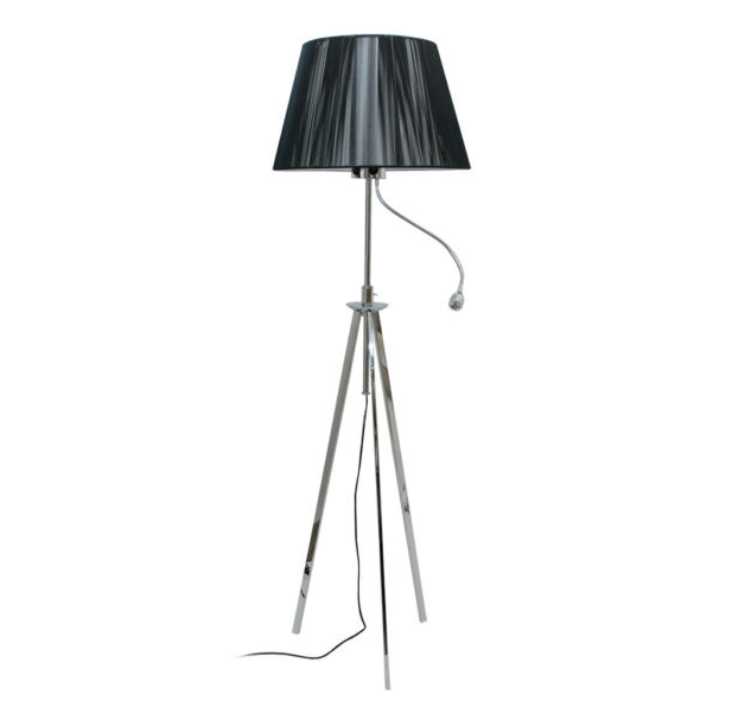 Tripled lattiavalaisin hurmaa tyylikkäällä kolmijalkaisella kromirungollaan ja klassisella mustalla kangasvarjostimella, joka tuo sisustukseen ryhdikkyyttä ja modernia ilmettä. Selkeälinjainen muotoilu tekee valaisimesta helpon yhdistää niin moderniin kuin perinteisempäänkin sisustukseen.