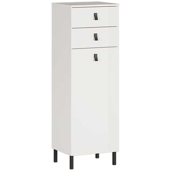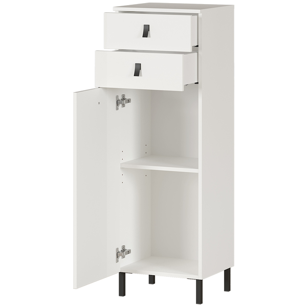 Tulsa kaappi on täydellinen ratkaisu kylpyhuoneisiin, joissa tilaa on rajallisesti. Sen kapea muotoilu, raikas valkoinen väri ja modernit mustat metallijalat sekä -vetimet luovat nykyaikaisen ja elegantin ilmeen, joka sopii saumattomasti erilaisiin sisustuksiin.