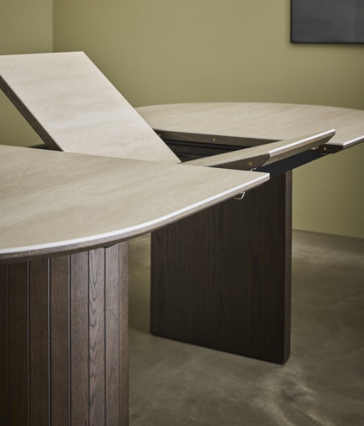 Ruokapöytä on erinomainen valinta niin arkeen kuin juhlavampiin illallisiin – jatkon avulla pöytää voi laajentaa 45 cm, jolloin tilaa riittää suuremmallekin seurueelle. Jatkomekanismi on suunniteltu toimimaan sulavasti ja vaivattomasti, jotta pöydän käyttö on yhtä laadukasta kuin sen ulkonäkö. Ullern-ruokapöytä kruunaa ruokailutilan ja tuo siihen ripauksen upeaa luksusta.