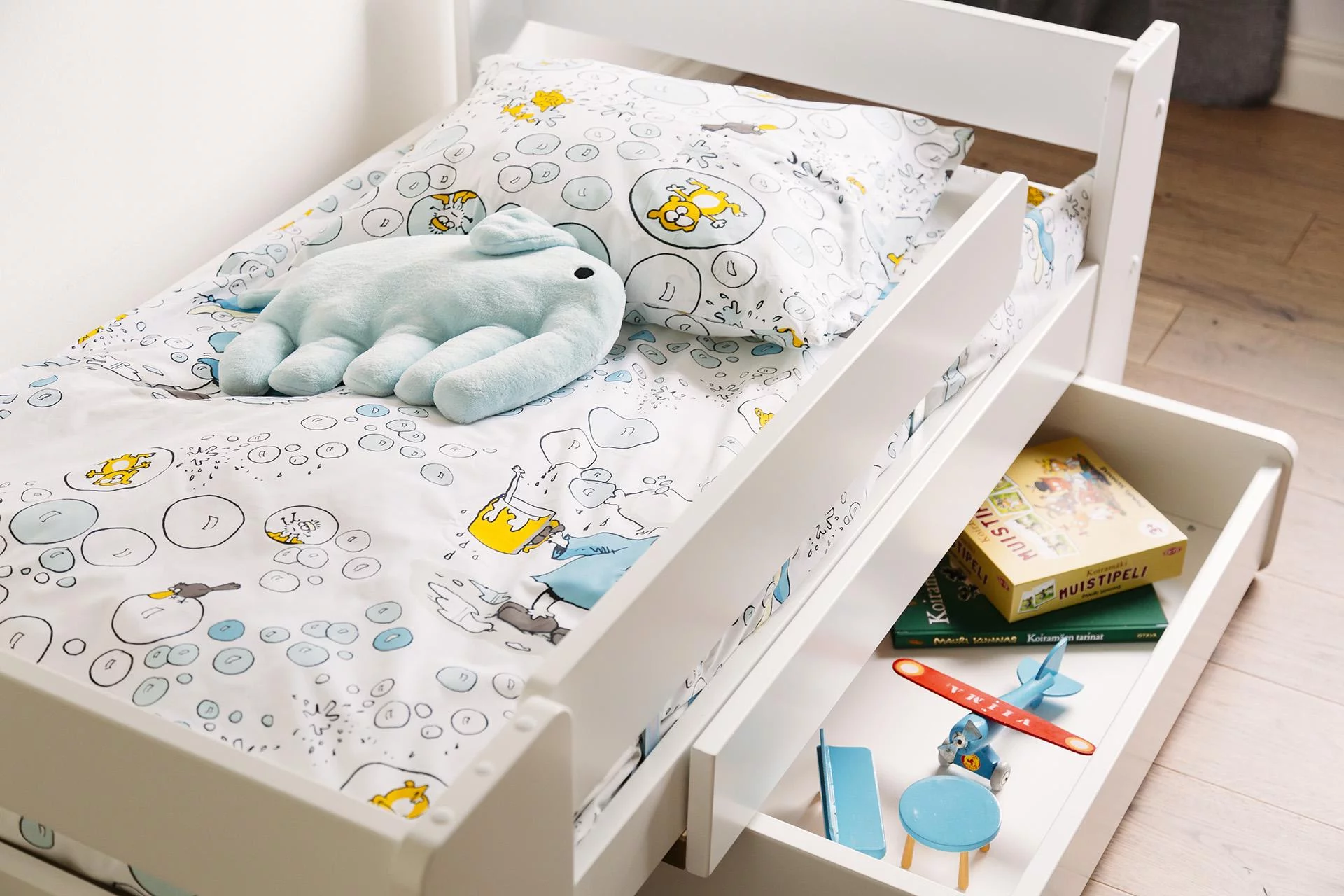 Unipuu Jatkopuu-sänky laatikolla