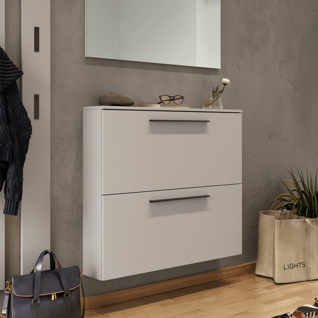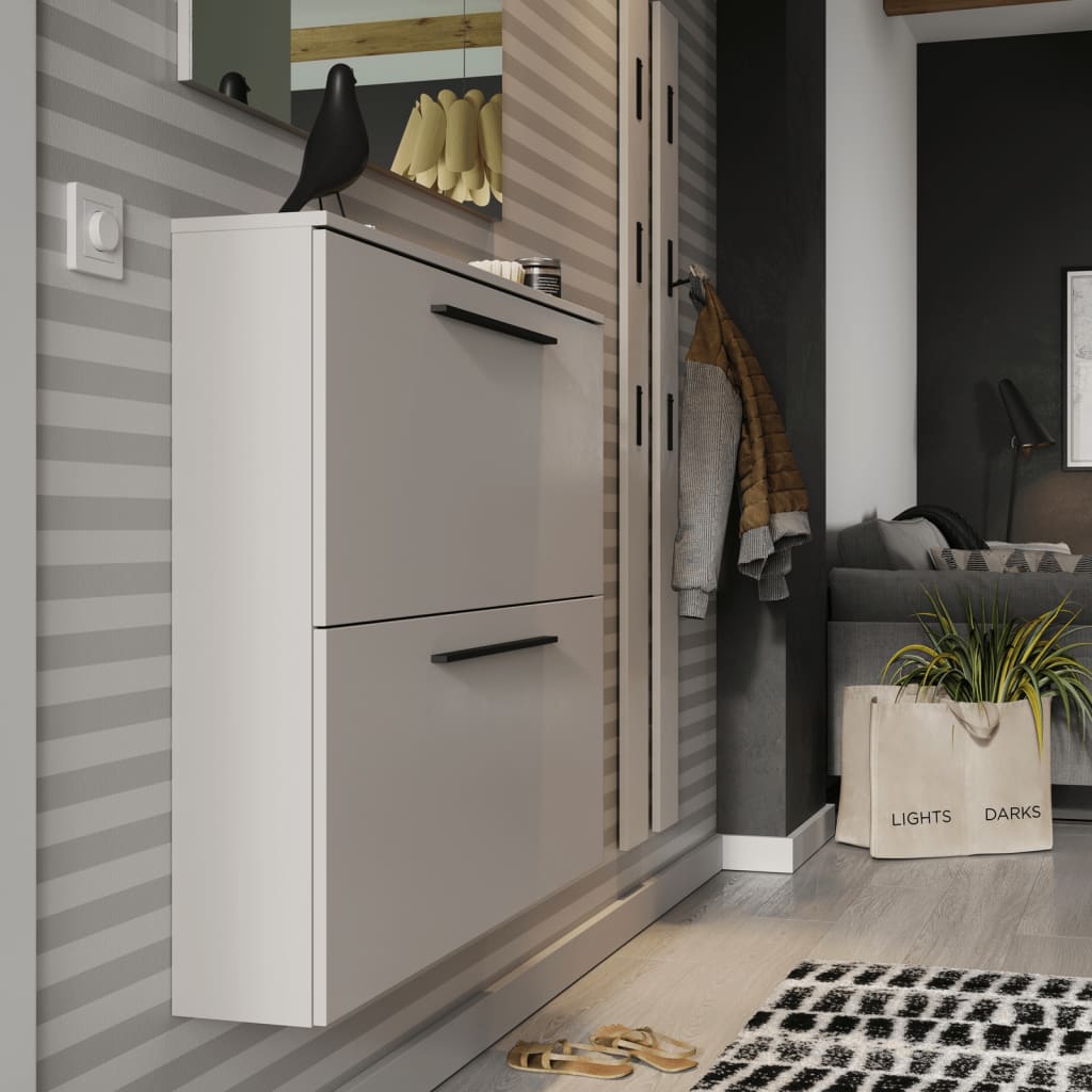 Utah kenkäkaappi 2575 tarjoaa tyylikkään ja käytännöllisen ratkaisun kenkien säilytykseen kahden klaffiovellisen kaapin ansiosta. Niihin mahtuu jopa kahdeksan kenkäparia, jolloin eteinen pysyy siistinä ja järjestyksessä ilman ylimääräistä vaivaa. Moderni muotoilu sopii täydellisesti nykyaikaiseen kotiin.