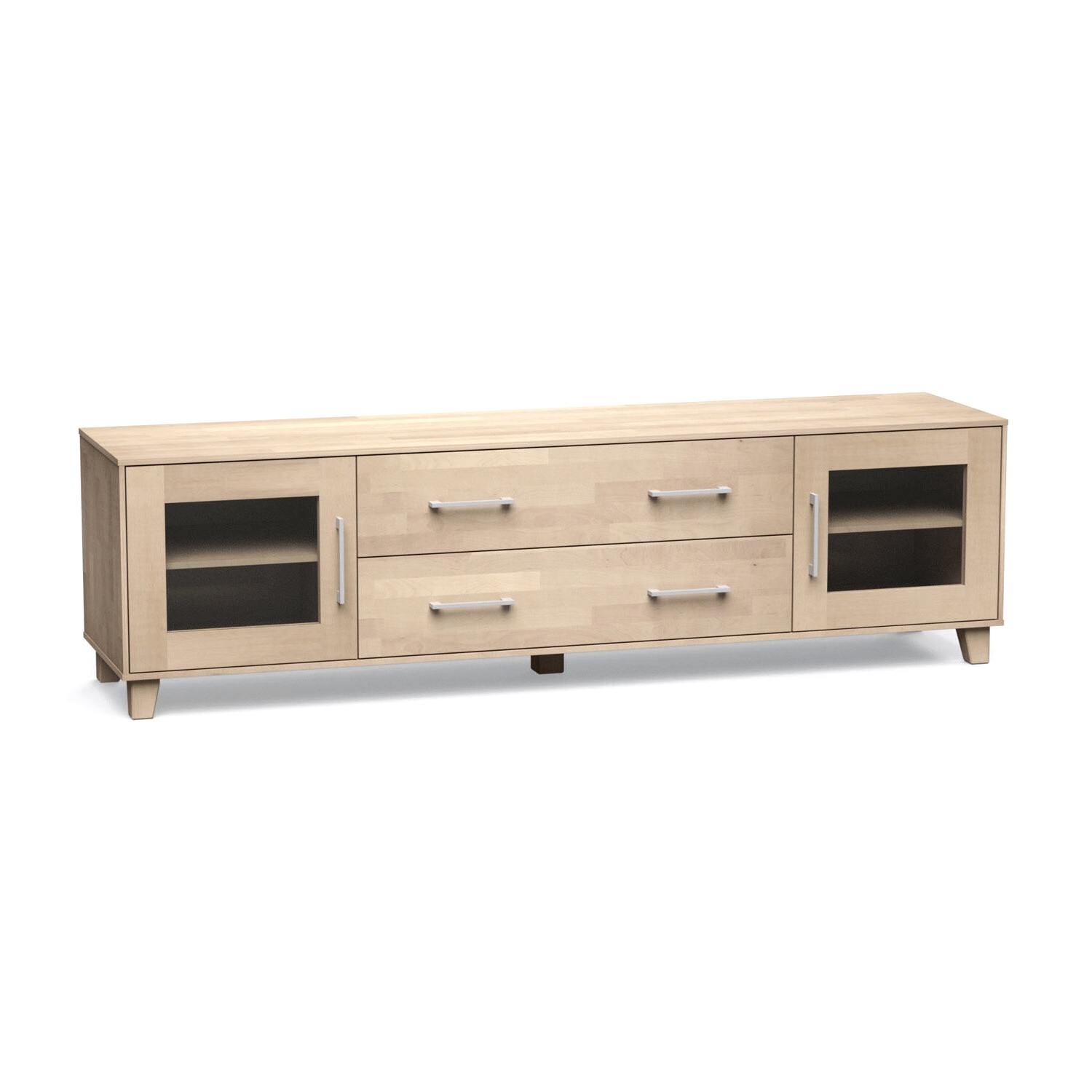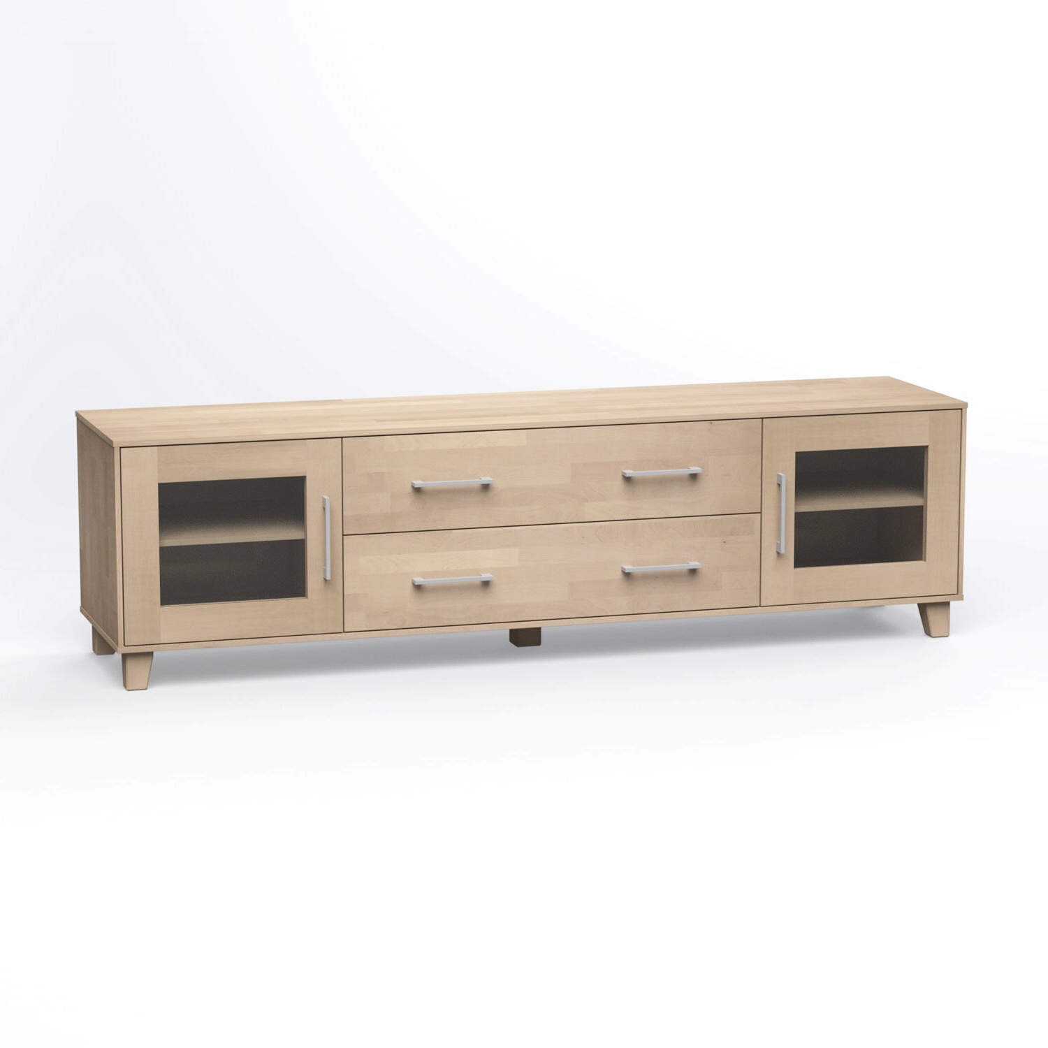Ta-tason materiaalina on massiivikoivu tai -tammi, jotka tuovat kalusteeseen luonnollista arvokkuutta ja pitkäikäisyyttä. Useat runkoväri- sekä vedinvaihtoehdot antavat mahdollisuuden muokata tuotteen täysin omaan sisustustyyliin sopivaksi. Jalustaksi voi valita vakiona tulevan puujalan tai sokkelin, joka madaltaa tv-tasoa 4 cm ja muuttaa sen visuaalista ilmettä.