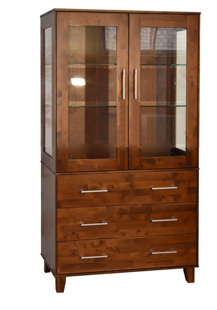 Vitriinin yksityiskohdat, kuten kolme eri vedinvaihtoehtoa sekä huoliteltu puujalka, tekevät siitä klassisen kauniin kokonaisuuden. Haluttaessa jalustaksi voidaan valita myös yksinkertainen sokkeli, joka laskee vitriinin korkeutta 4 cm ja muuttaa ulkonäköä kevyemmäksi tai modernimmaksi.