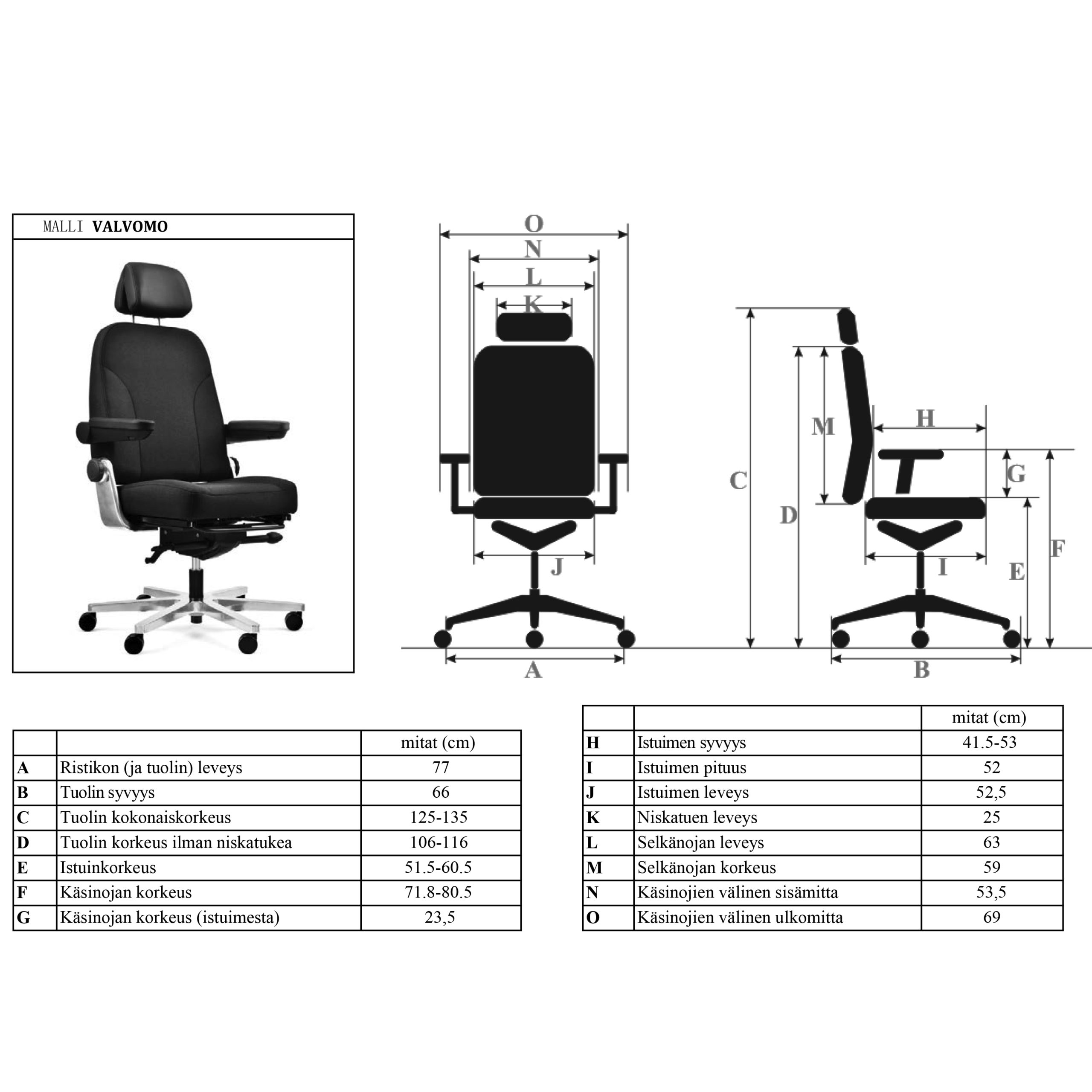 77 cm66 cm125-135 cm70 cm cm cm cm51 cm52 cm41.03 cm cm cm cm59 cm23.5 cm cm cm cm cm cm cm cm cm cm cm cm cm cmKromi, Musta cmPainoraja 200 kgTakuu 5 vuottaTilaustuoteToimitus osina40 kgKaukoitä cm cm cm2D korkeussäädettävät käsinojat R201, Istuinkaltevuuden säätö, istuinsyvyyden säätö, Korkeuden säätö normaalia vahvemmallla kaasujousella, Käsinojien säätö korkeus ja sivusuuntaan, painon mukaan säädettävä keinuvastus, Selkänojan korkeudensäätö, vapaasti pyörivät pyörät
