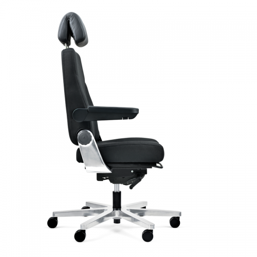 Tämä raskaan sarjan valvomotuoli on tehty kestämään jatkuvaa käyttöä, ja sen erikoisvahvistettu mekanismi, kaasujousi sekä 40 kg kokonaispaino takaavat erinomaisen vakauden ja pitkäikäisyyden. Tuolin 720 mm leveä, kuusisakarainen ristikko ja 200 kg maksimikuormitus tekevät siitä poikkeuksellisen tukevan myös vaativissa työympäristöissä. Musta kangasverhoilu kestää huikeat 500 000 Martindalea, ja niskatuki on viimeistelty aidolla nahalla.