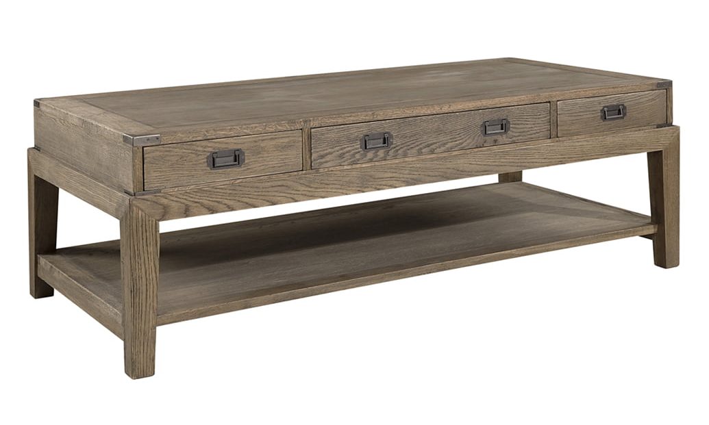 Sohvapöytä on valmistettu massiivitammesta ja tammiviilusta, jotka on vahattu kestämään käyttöä ja korostamaan puun luonnollista kauneutta. Antiikkivetimet täydentävät kokonaisuuden tuoden siihen hienostunutta klassista charmia.