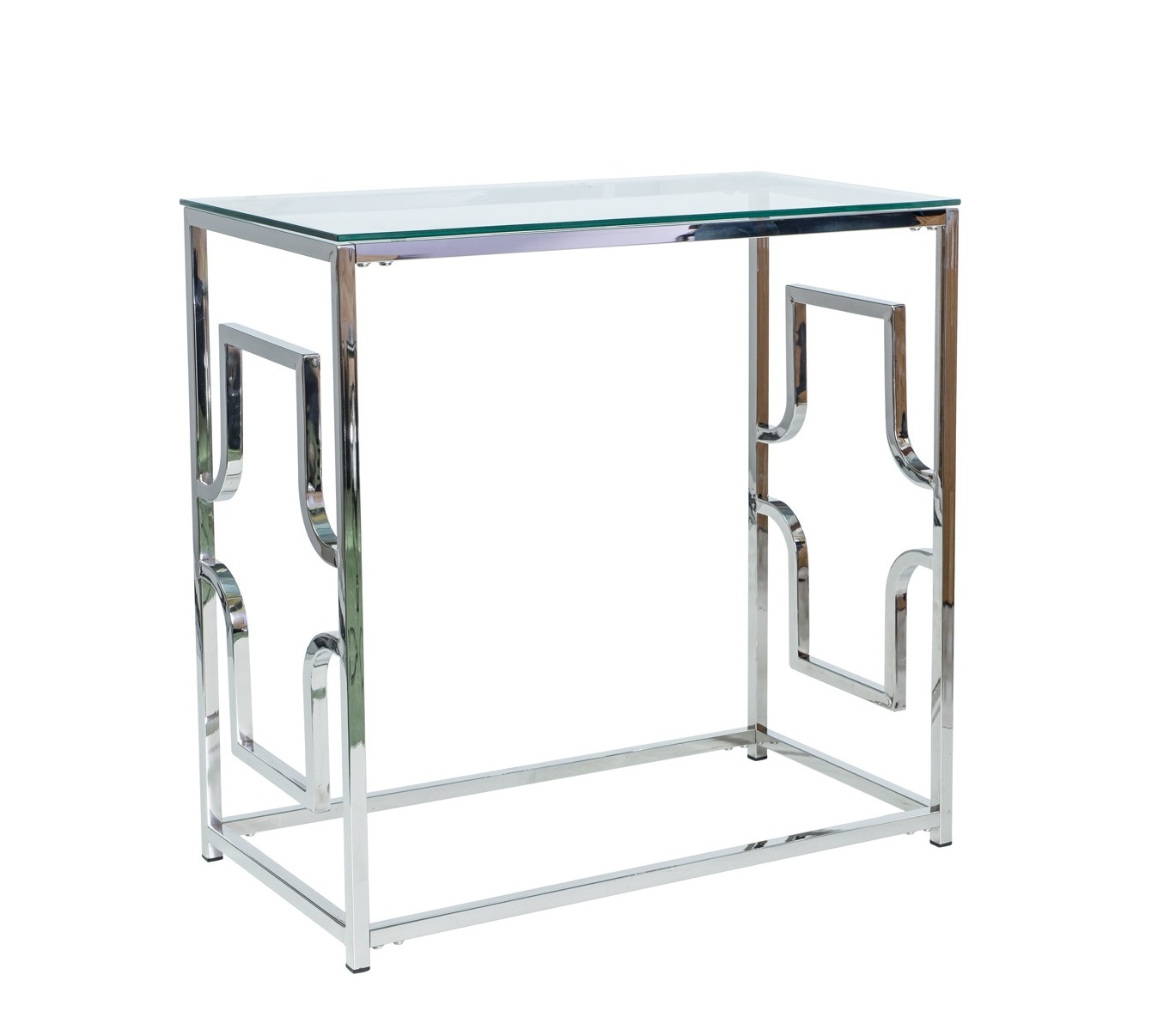 Versace Konsolipöytä yhdistää kirkkaan karkaistun lasin ja kiiltävät kromijalat, luoden ylellisen ja modernin kokonaisuuden, joka täydentää niin olohuoneen, eteisen kuin minkä tahansa muun tilan sisustuksen. Sen selkeä ja ilmava muotoilu tuo tilaan avaruutta ja tekee siitä näyttävän katseenvangitsijan.