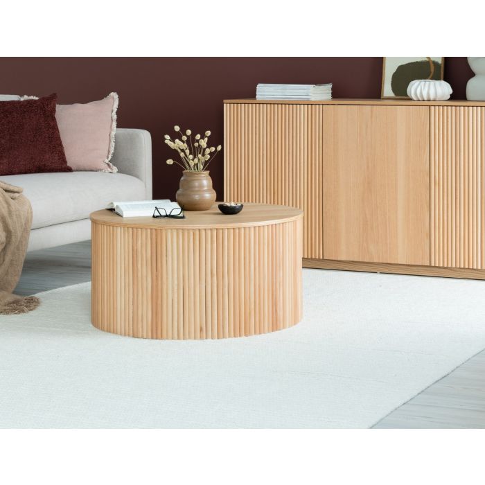Verso-sohvapöytä tuo olohuoneeseen lämpöä ja harmonista ilmettä luonnonvärisellä pinnallaan ja pyökkirimoilla koristelluilla reunoillaan. MDF- ja tammiviilurakenne tarjoaa laadukkaan ja kauniisti viimeistellyn kokonaisuuden, joka sopii täydellisesti niin moderniin kuin skandinaaviseen sisustukseen.