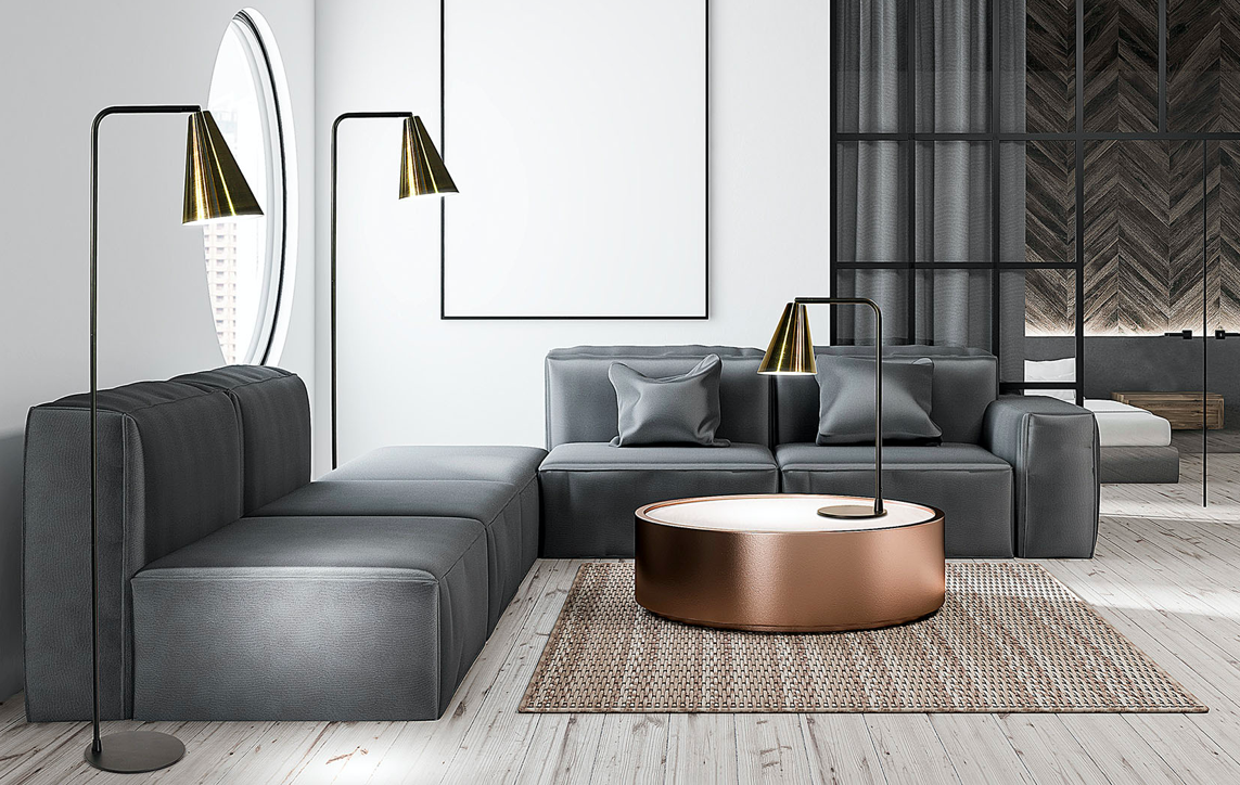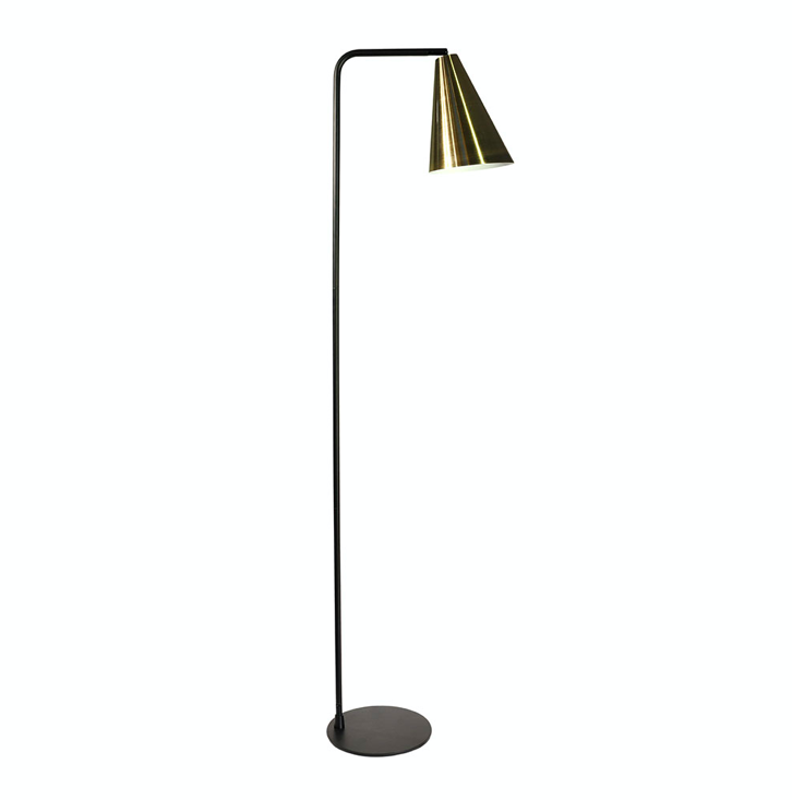 Vigo lattiavalaisin yhdistää tyylikkään mustan metallirungon ja mattamessinkisen kuvun näyttäväksi kokonaisuudeksi, joka tuo sisustukseen modernia särmää ja eleganttia kontrastia. Ajaton muotoilu tekee valaisimesta katseenvangitsijan niin olohuoneeseen kuin makuuhuoneeseenkin.