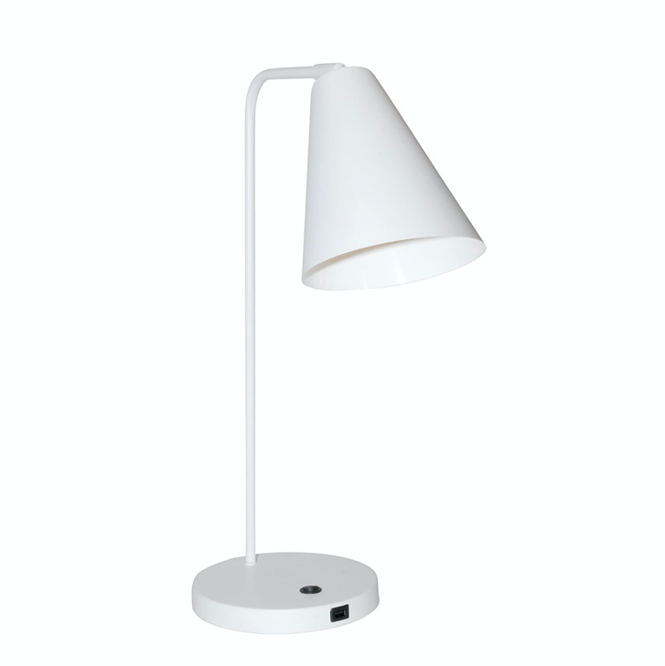 Vigo USB pöytävalaisin yhdistää selkeälinjaisen muotoilun ja modernin käytännöllisyyden tyylikkääksi kokonaisuudeksi. Mattamusta tai valkoinen metallirunko ja yhtenäinen kupu sopivat täydellisesti moderniin, skandinaaviseen ja minimalistiseen sisustukseen.