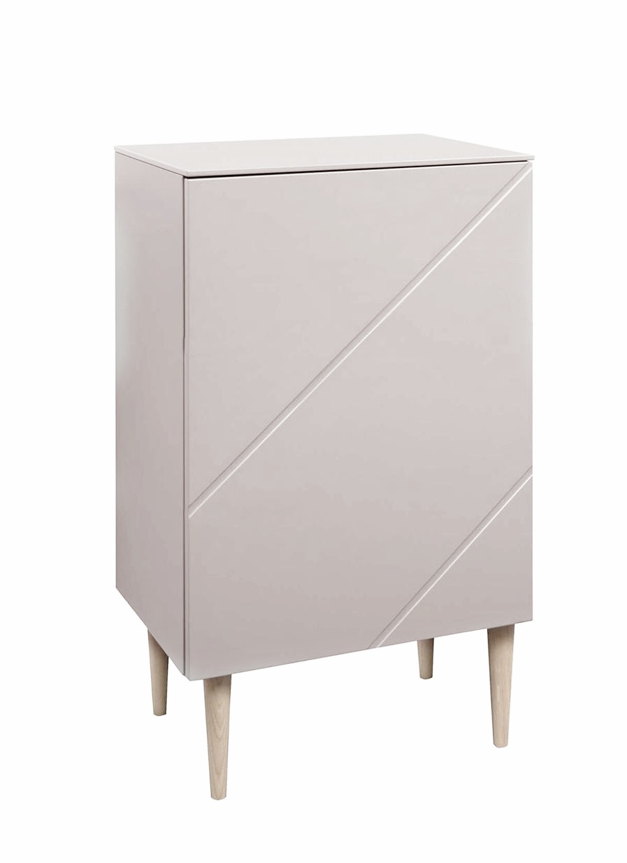 Korkeat jalat luovat lipastolle kevyen ja ilmavan vaikutelman, joka sopii erinomaisesti nykyaikaiseen sisustukseen. Lipasto yhdistää keveyden ja tukevuuden harmonisesti, tarjoten visuaalisesti miellyttävän kokonaisuuden.