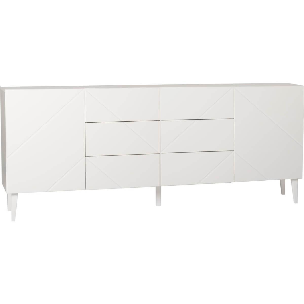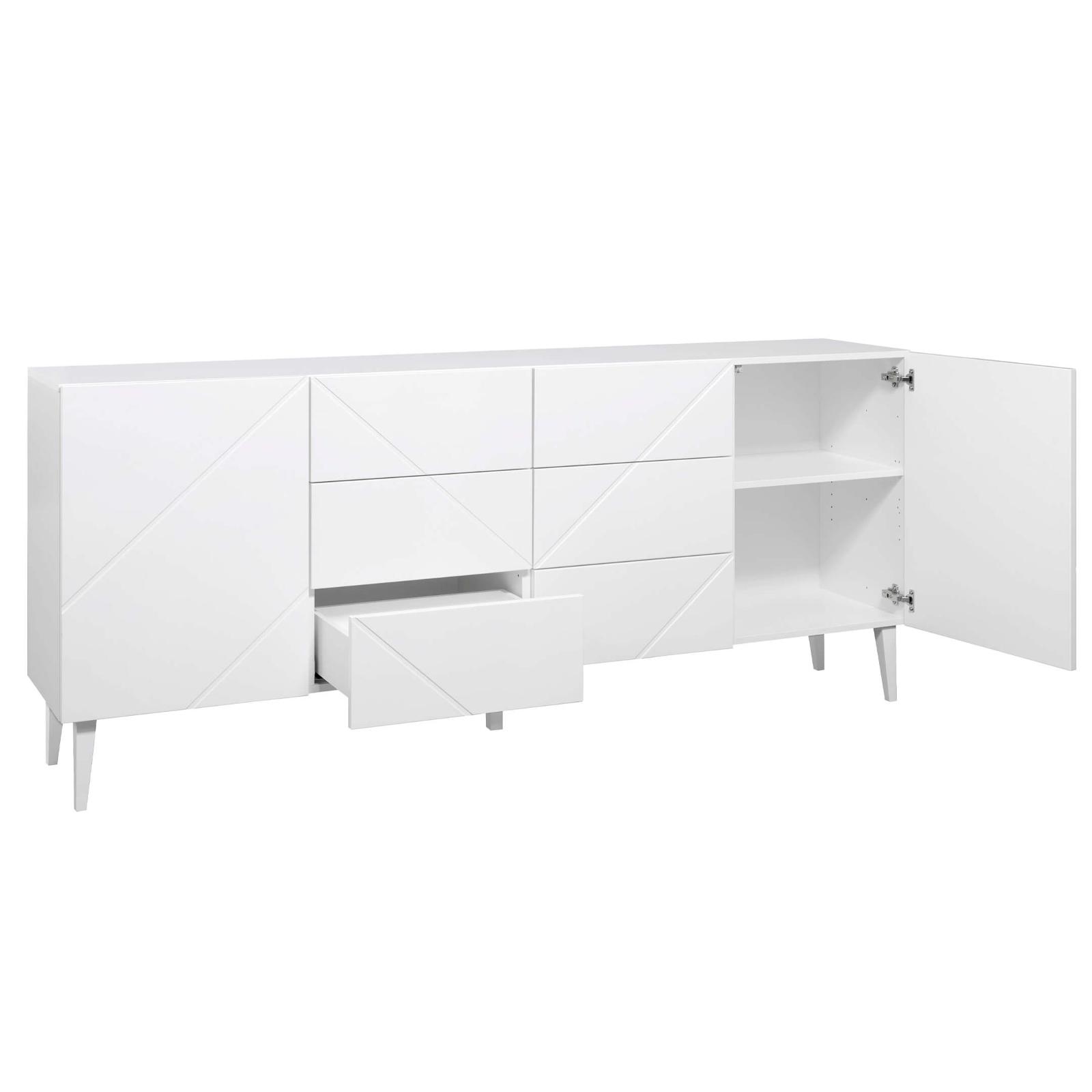 Kaksi kaappia korkeussäädettävillä hyllyillä sekä kuusi tilavaa vetolaatikkoa tarjoavat reilusti säilytystilaa kaikille kodin tarpeille. Senkin harkittu rakenne tekee siitä yhtä aikaa tyylikkään ja erittäin toimivan.