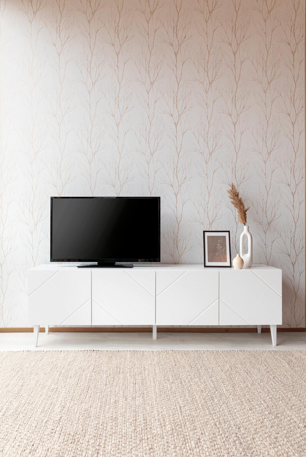 Neljä kaappia korkeussäädettävillä hyllyillä tarjoavat reilusti säilytystilaa, pitäen kodin järjestyksessä ja tavarat tyylikkäästi piilossa. Taso sopii erinomaisesti niin olohuoneeseen, ruokailutilaan kuin työhuoneeseenkin. Taso on myös saatavana seinäkiinnityksellä.