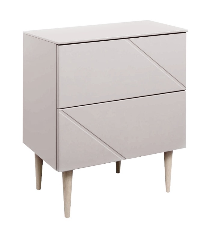 Kompakti koko ja kaksi tilavaa laatikkoa tekevät lipastosta monipuolisen – se toimii yhtä hyvin yöpöytänä kuin säilytyskalusteena muissakin tiloissa. Kevyt ja ilmava muotoilu täydentää modernin kodin sisustuksen.