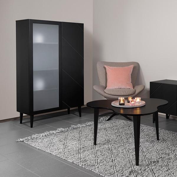 Vilja V8.1 vitriini yhdistää ajattoman skandinaavisen muotoilun ja käytännöllisen toiminnallisuuden, tuoden kotiisi tyylikkään ja kevyen ilmeen. Hienostunut uritus ja korkeat jalat korostavat vitriinin ilmavaa ja modernia designia.