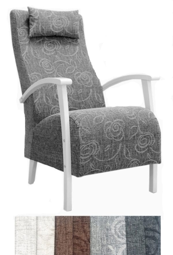 • Korkeaselkäinen mutta siro ja tukeva Wiivi nojatuoli kangasverhoiltuna.  Tuolin on verhoiltu kuviollisella Alknis kankaalla. Lisätiedoista sivun alareunasta on tilattavissa rahi tuoliin. Toimitetaan koottuna