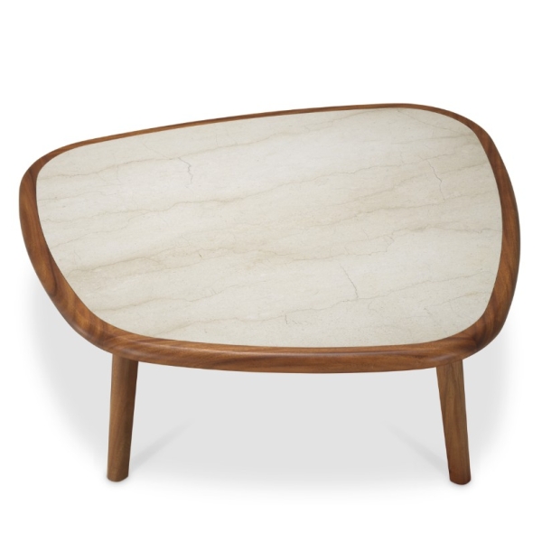 Wilma sohvapöytä on tyylikäs marmori- ja mahonkirakenteinen sohvapöytä, jossa yhdistyvät beige marmoritaso ja lämminsävyinen puurunko. Tämä ajattoman elegantti design-sohvapöytä tuo olohuoneeseen luonnollista arvokkuutta ja modernia hienostuneisuutta.