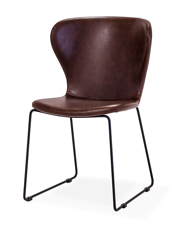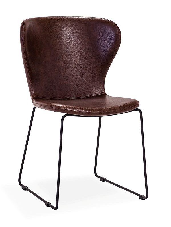 Tuoli on verhoiltu helppohoitoisella keinonahalla, joka yhdistää siistin ulkonäön ja arjen käytännöllisyyden. Musta metallijalka tuo rakenteeseen vakautta ja modernia kontrastia, ja värivaihtoehdot – ruskea tai musta istuin – mahdollistavat tuolin sovittamisen monenlaiseen sisustukseen.