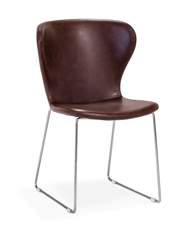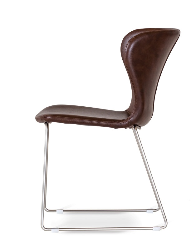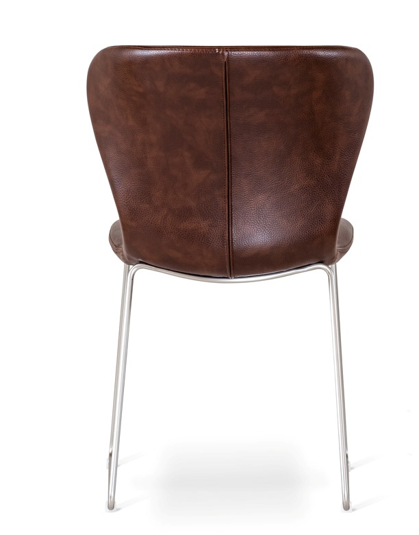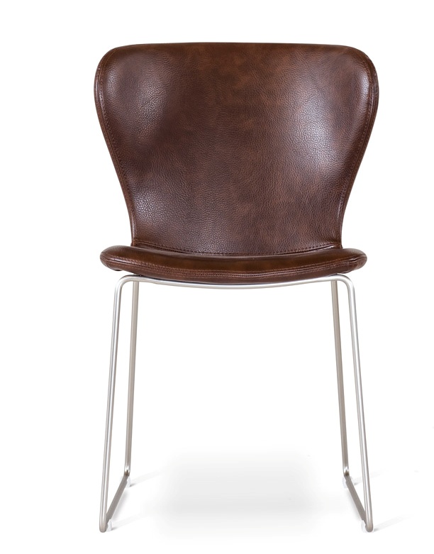 Tuoli on verhoiltu kestävällä ja helppohoitoisella keinonahalla, joka sopii erinomaisesti päivittäiseen käyttöön. Harjatusta teräksestä valmistettu metallijalka tuo kokonaisuuteen modernia ilmettä ja tukevuutta, ja värivaihtoehdot – ruskea tai musta istuin – mahdollistavat harmonisen sovittamisen eri sisustustyyleihin.