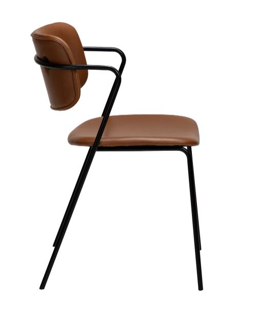 Vintage Art -keinonahalla verhoiltu istuin tarjoaa miellyttävän istumakokemuksen ja tuo tuoliin pehmeää ilmettä. Mustat pulverimaalatut metallijalat tukevat rakennetta ja tekevät tuolista kestävän sekä pitkäikäisen valinnan päivittäiseen käyttöön.
