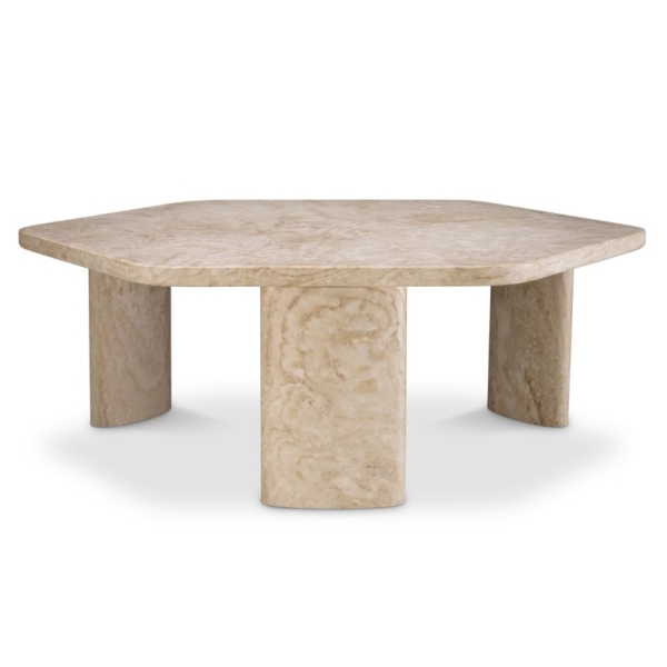 Zenitho sohvapöytä on valmistettu kokonaan travertiinista, jonka elävä juovitus ja lämpimät maanläheiset sävyt tekevät jokaisesta pöydästä ainutlaatuisen. Luonnonkiven orgaaninen pinta tuo tilaan syvyyttä ja ajattoman ylellistä tunnelmaa. Tämä sohvapöytä toimii näyttävänä keskipisteenä olohuoneessa, jossa arvostetaan aitoja materiaaleja ja korkeatasoista designia.